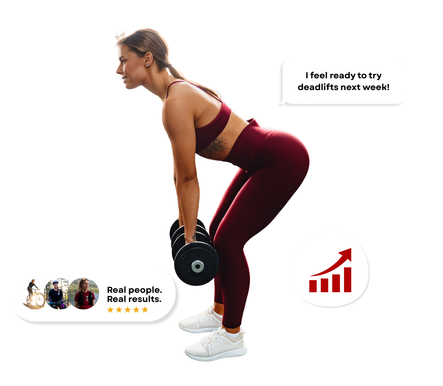 Some grit and a good attitude. Basic strength equipment is helpful (like dumbbells, kettlebells or resistance bands). If you have a gym membership, great! Just let us know what you have access to and we build and design your plan based on what’s available to you.
